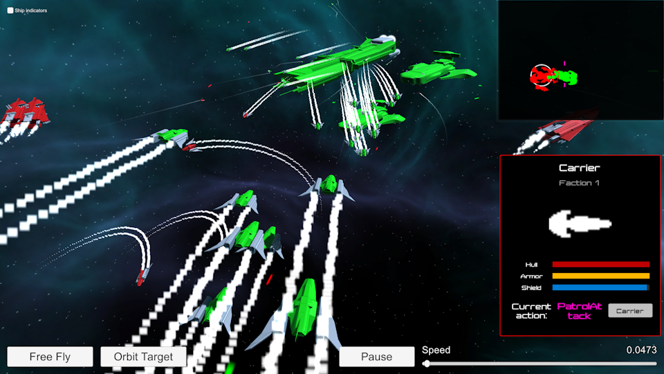 - A space battle simulator where you build your fleet and watch a simulated battle in 3d space